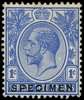 1921 1c in blue, overprinted SPECIMEN Type D16, ungummed and on unwatermarked paper. A colour trial or possibly a printer's sample. For SG 218