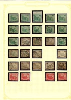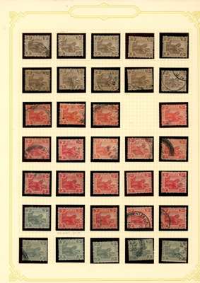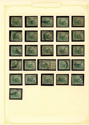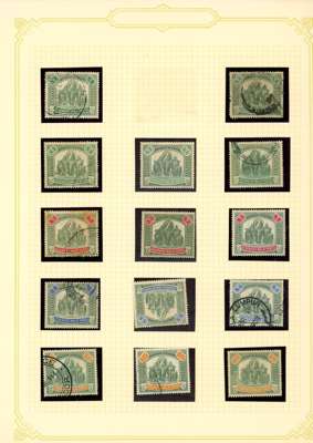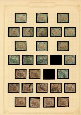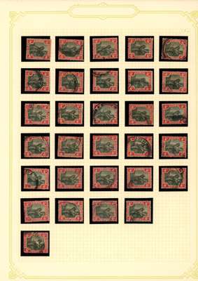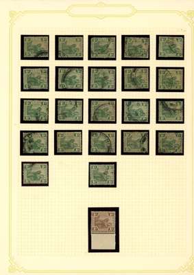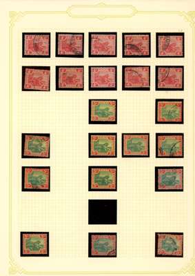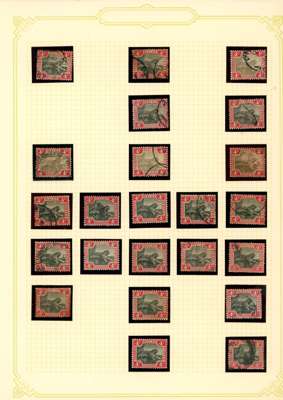 1904-21 collection (390) mint, used and specimens on leaves. Heavy duplication of low values, especially used, with a fine range of shades, but toning affecting some; 2 x $1 mint, 2 x $2 mint, one with dried gum and the other with a hint of foxing; $5 mint, foxed spots on reverse; $25 part o.g., a little toned, and two fiscally used; Specimen set of eleven plus five duplicates, good appearance but some faults/adhesions. SG 27/50