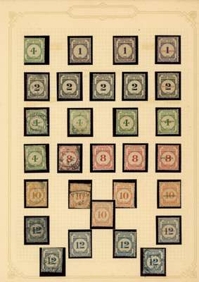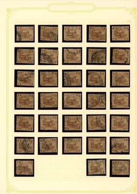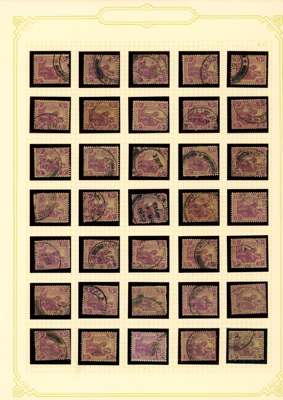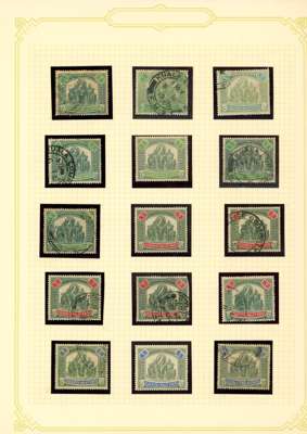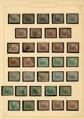 1922-34 Script watermark collection on leaves (637) commencing with almost complete Specimens to $5, missing only the 2c brown and the 5c mauve on yellow paper, a few faults with $5 vignette colour washed. Missing some of the low values, while the more common stamps are heavily duplicated; the high values with $5 Tiger fine o.g. and fine used (part Telok Anson CDS), $5 Elephants brown o.g. Also range of Postage Dues (29) including toned Specimen set. SG 52-81