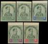 1891-4 imperforate Colour Trials of the 1c value, each with wide margin at top, unwatermarked with gum varying from cream to brownish, unmounted. In green and emerald, shades of green (crease at base), green and dark blue, green and purple and green and carmine, each numbered in pencil on reverse. For SG 21