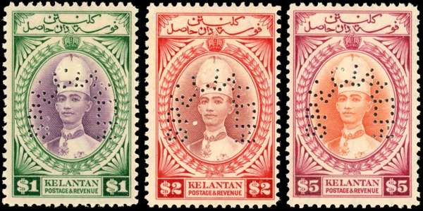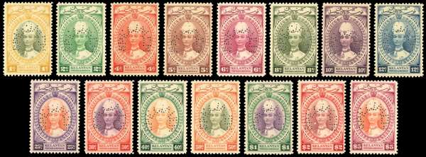 Malaya - Kelantan 1937-40 set of fifteen perforated SPECIMEN, SG 40s/54s