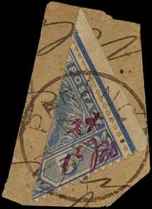 1897 2c on half of 5c blue, the Kuala Lipis manuscript provisional, divided diagonally, used on a piece with brownish Pahang CDS of DE 1 97. From the third group of surcharges. SG 18, £450