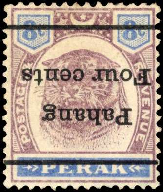 Malaya - Pahang 1899 4c on 8c dull purple and ultramarine with surcharge inverted, SG 25a