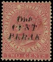 1886 1c on 2c pale rose with Type 26 surcharge double, heavily toned o.g., affecting the appearance, and foxing touches on...