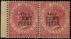 1889 1c on 2c pale rose o.g. pair with sheet margin at left, surcharge Type 32, R6/1 with PREAK error. Gum very toned but still of reasonable appearance, a rare multiple. SG 35, a, £985