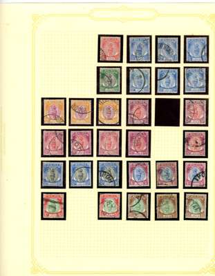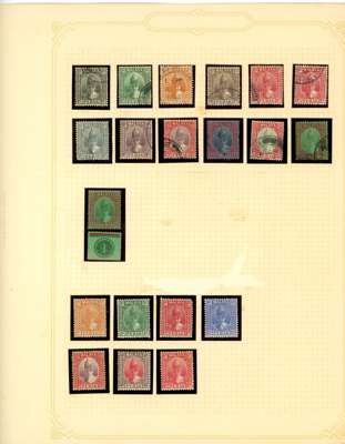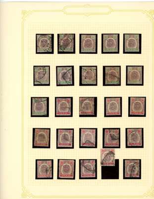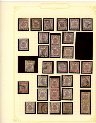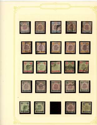 1892-1971 mint and used collection (hundreds) on leaves. Includes SG 61s-5s Specimens with four duplicates; 1895 duplicated with $1 used, thinned, and unused with thin gum; $3 used, slightly washed; $5 mint, slight foxing on reverse; $25 fiscal; Specimen set with five duplicates, some faults, and $25 Specimen also faulty; various 1900 surcharges including varieties; 1935 values to $5 mint; 1938 set o.g. with additional $5 and values to $5 used, two of the $5 (one with faked cancel, the other dubious), and later material. Some toning and general mixed condition