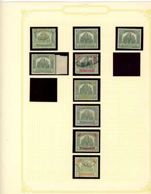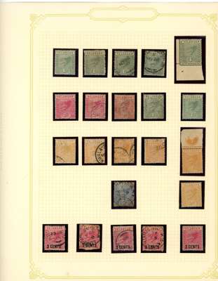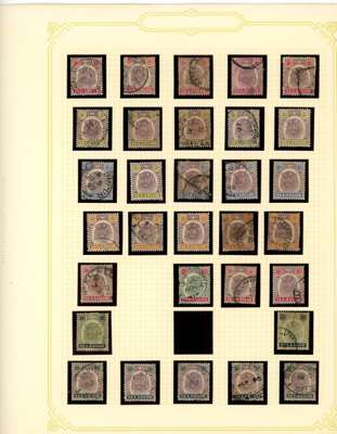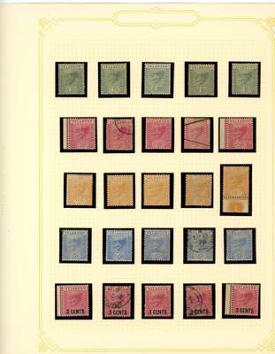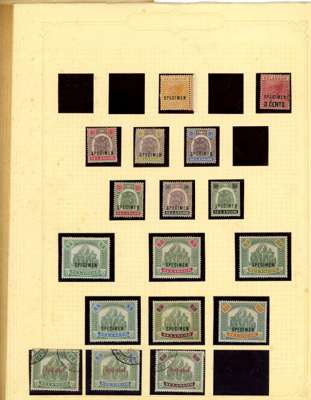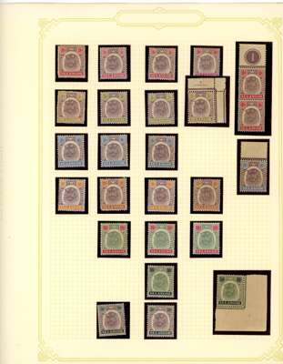 1891-1941 collection (184) on leaves; mint, used and Specimens, with some duplication. Includes 1895 mint to $1 (2 x the 50c green and black, one lightly toned and the other more heavily), $3 (unobtrusive crease), $5 (faults) and $10 (a little rust on reverse), used includes the $25 with Kajang CDS (Proud D1) but washed. Specimens include 1895 values (12) to $25 in mixed condition. Also 1895 Judicial overprints on $1, $2 and $10 used, and 1941 $1 values. Needs inspection