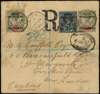 1895 registered cover to England with ½d on 2½d handstamped Type 4 in green, together with two Oil Rivers 2ds, Old Calabar...