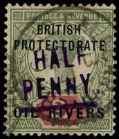 1893 ½d on 2d handstamped Type 3, used with Old Calabar CDS of JY 3 94. good colour. SG 9, £375
