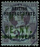 1893 ½d on 2½d handstamped Type 4 in green, fine used with Old Calabar AU 28 94 CDS. First N of PENNY has largely failed...