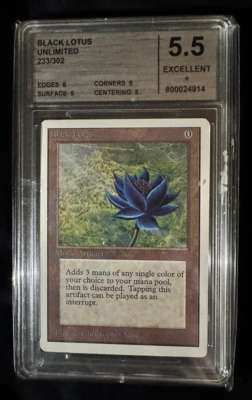 This lot features a graded Unlimited Black Lotus. The item has been authenticated and graded by Card Marketing grading - the company behind Magic Card Market. it is consigned by one of the most reputable traders in Europe and the card itself has been awarded an Excellent 5.5 grade.
