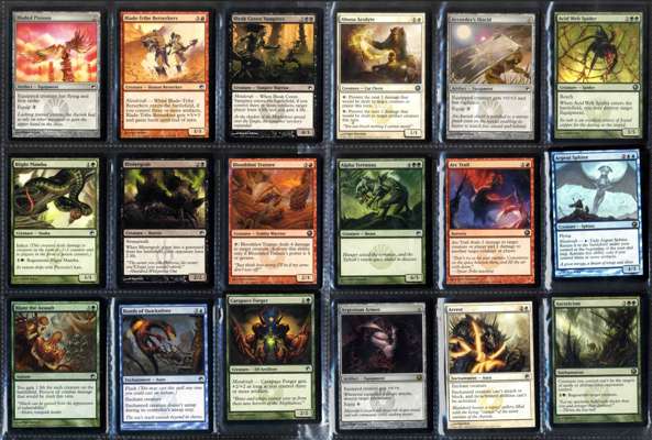 Each set contains tons of cards and foils with the highlights being: Argentum Armor, Asceticism, Blackcleave Cliffs, Contagion Engine, Darkslick Shores, Ezuri, Renegade Leader, Skithiryx, the Blight Dragon, Venser the Sojourner, Mental Misstep, Torpor Orb and tons of other rares alongside a plethora of foil commons and uncommons and most of the tokens that belong to the expansions.