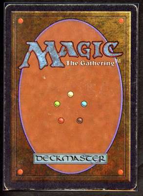 The rear face of the card shows heavier abrasions and a noticeable scuff below the ‘M’. Typical edge wear is also present, with some clearly defined nicks in the border. Overall, the card looks better than the Played condition would immediately suggest, making this a grade choice for players and collectors.
