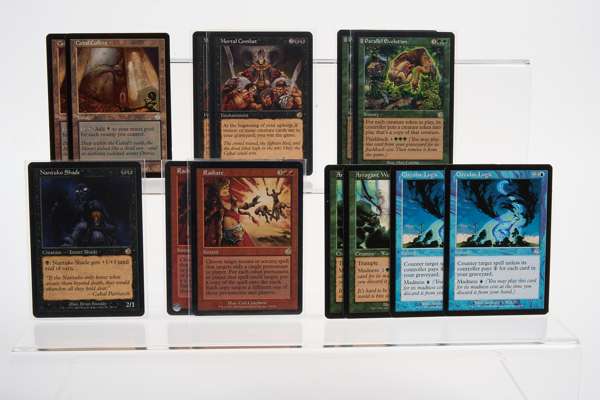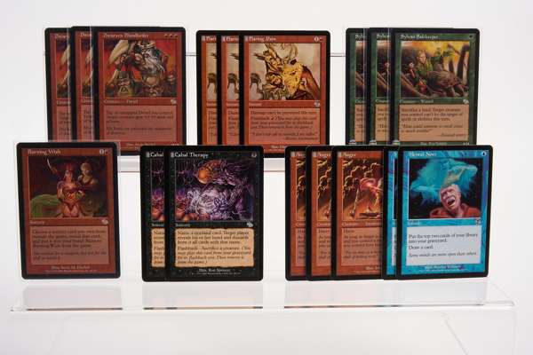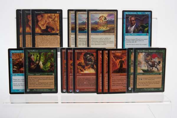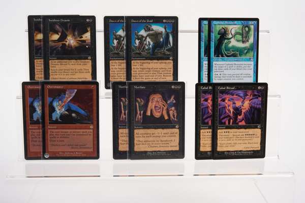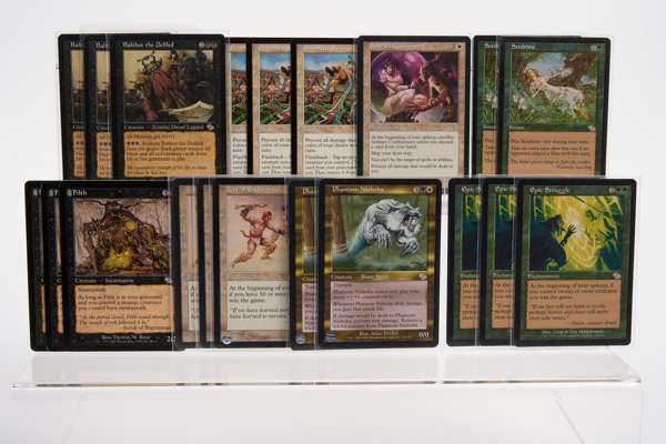 This collection contains cards from across the Odyssey block: Odyssey, Torment, and Judgement. These are partially completed sets with many cards missing, but this lot offers a huge number of staples for a variety of formats. Highlights include: x3 Tainted Pact, x2 Cabal Coffers, x3 Sylvan Safekeeper, x2 Cabal Therapy, x2 Insidious Dreams, x3 Seize the Day, x2 Cabal Ritual, x2 Mental Note, x3 Balthor the Defiled, Standstill, x3 Epic Struggle, x2 Arrogant Wurm, and many others. These cards are from an excellent block of sets, appealing to many different players and collectors. Cards range from Good (GD) condition up to Near Mint (NM). Includes a small number of foils.
