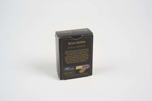 The gold-bordered version of the deck Brian Selden took to the Seattle World Championships in August 1998. This deck has been lightly used, and as a result the cards are mostly in the Excellent (EX) condition. Comes with original deckbox, inserts and blank cards. This deck includes multiple copies of extremely powerful cards such as: x4 Survival of the Fittest, x4 Recurring Nightmare, x3 City of Brass, and Volrath’s Stronghold.