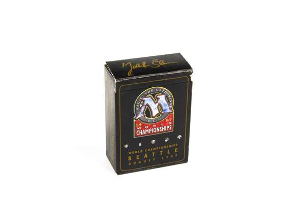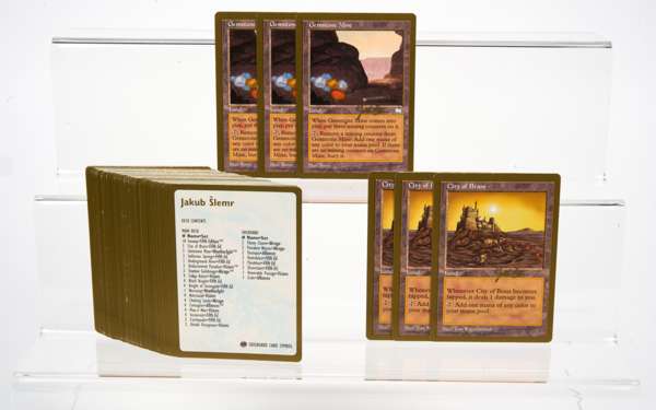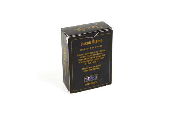 The gold-bordered version of the deck Jakub Slemr took to the Seattle World Championships in August 1997. This deck has been lightly used, and as a result the cards are mostly in the Excellent + (EX+) condition. Comes with original deckbox, inserts and blank cards.