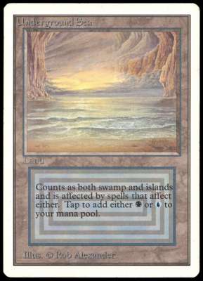 This Unlimited Underground Sea is graded ‘Good’ Condition by the European standards, this is a very high example of Good and would be considered Light Play- by the American TCG Player standards. The card is very clean on the front and has one or two examples of black/dirt spots on the front, something that is a common problem with old white baorder cards. It has one or two blemishes/scuffs on the back and one or two light scratches.