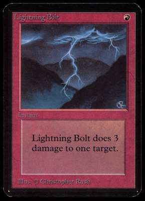 ‘Lightning Bolt’ from Alpha in Excellent (EX) condition. This card needs little introduction, with this particular copy in fantastic condition for its age. Slight marks on the corners where the card was originally cut, with light surface scratching and border wear that just lowers the grade from NM.