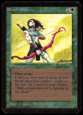 ‘Elvish Archers’ from Alpha in Good (GD) condition. The card as very minor border wear and a number of faint scratches on the surface, only visible with close inspection.