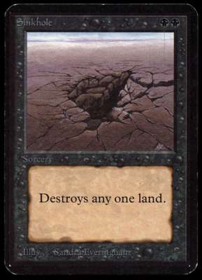 ‘Sinkhole’ from Alpha in Excellent (EX) condition. This card is a particularly great example, with only light scratches on the rear surface and a couple of small chips on the borders. The corner have slight wear, likely caused from the original cutting process.