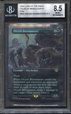 Beckett 8.5 graded Orcish Bowmasters, borderless foil version from the Tales of Middle-Earth set.