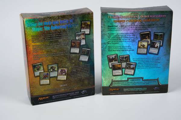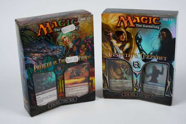 A sealed copy of the two duel deck sets: Elspeth vs. Tezzeret and Phyrexia vs. The Coalition. Sealed and in good condition. The latter has some original price stickers present.