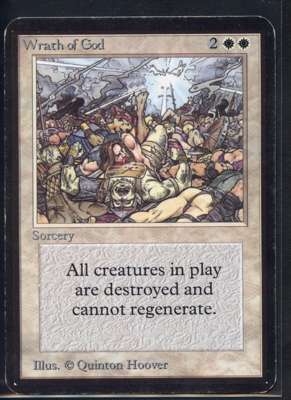 Arguably the most desirable printing of a card still frequently used today, this Wrath of God features Alpha's iconic rounded corners and aesthetic. Typical age-related wear puts this card in Played condition, but Quinton Hoover's incredible painting has never looked better.