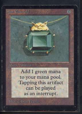 Light scuffs and surface marks in addition to typical edge wear and aging make this Mox Emerald Light Play. The wear is uniform, enhancing the card's visual appeal.