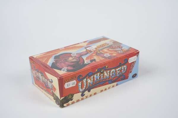A factory sealed booster box of Unhinged in fantastic condition, featuring 36 booster packs.