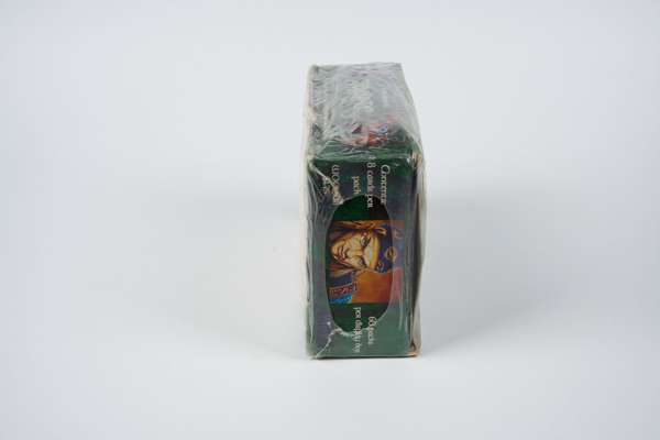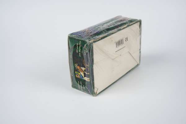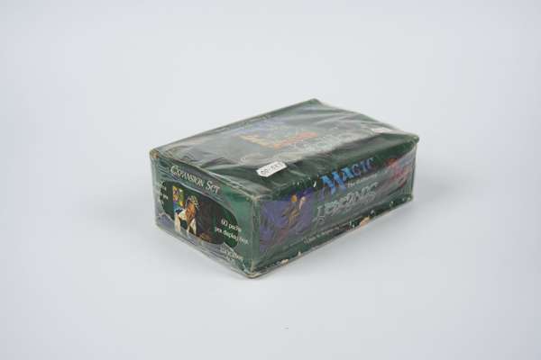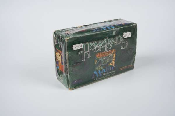 A factory sealed booster box of Homelands all the way from 1995. This set is one of the all time ‘meme’ Magic sets, however it is still incredibly rare to find as a sealed booster box. The box has two of its original pricing stickers in addition to some signs of wear and crushing, with some rips in the plastic wrap that occur naturally in a 30 year old box.