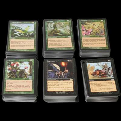 This lot contains over 1200 cards from the Urza's Saga expansion. It includes rares, uncommon and common cards.