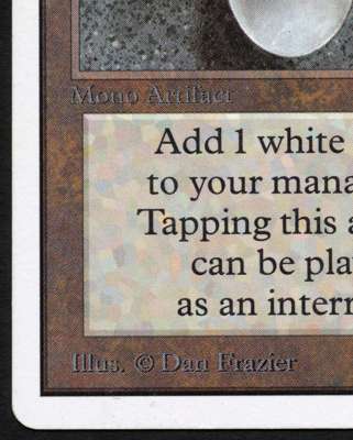 This Mox Pearl is certainly a collectors piece, the card is in excellent condition (The American grading equivalent would be Light Play). The front and back are incredibly clean with hardly any imperfects, rollers lines, or signs of whitening. The grade is because the card has one or two very light scratches on the back which are only visible via a light.