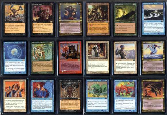 This lot features a complete set of Planeshift, you'll be bidding on one copy of every card from the set plus a sprinkling of foils from all rarities. The set comes complete in alphabetical order and stored in ultra pro 9 pocket pages. They come from the personal collection of a long time magic player and while conditions vary the overall condition of this set is Excellent with the main cards as follows: