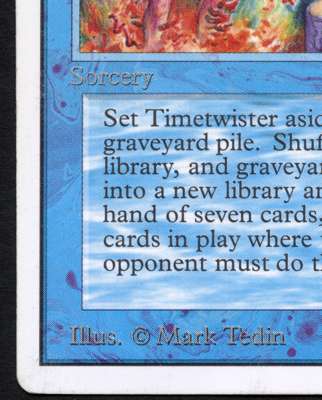 While this Timetwister is considered to be heavy played condition its still more than sleeve playable and the front is absolutely beautiful. The back has significant signs of whitening and signs its been shuffled but this is still a fantastic card that would suit any blue deck!