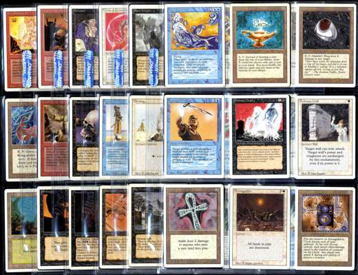 Animate Dead NM, Armageddon GD, Badlands PR, Bayou NM, Demonic Tutor is NM, Mana Vault NM, Plateau EX, Savannah EX, Tundra GD, Volcanic island NM, Wheel of Fortune GD,