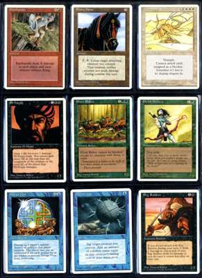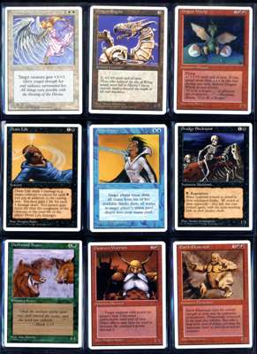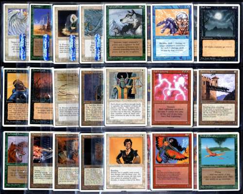 Animate Dead NM, Armageddon Poor, Balance NM, Birds of Paradise NM, Land Tax GD, Mana Vault NM, Stasis PD, Sylvan Library EX, Winter Orb PR,