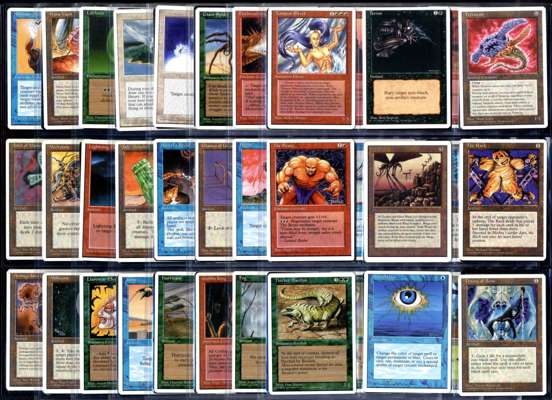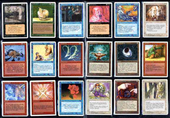 You'll be bidding on one copy of every card from the set. The set comes complete in alphabetical order and stored in ultra pro 9 pocket pages. They come from the personal collection of a long time magic player and while conditions vary the overall condition of this set is Excellent with the main cards as follows: