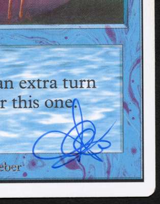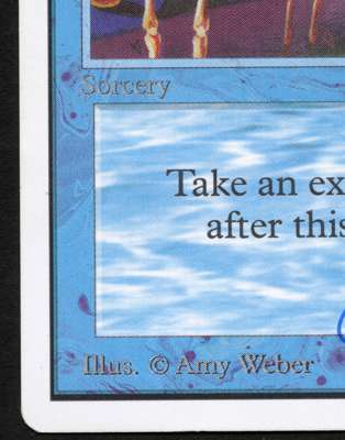 This Time Walk is another casualty of the ring binder damage, the card is slightly bent as a result of being left hanging over the rings of the binder but other than that it is in very good condition - it has a very clean surface both on the front and back and minimal edgewear. The Time Walk is also signed by the original Artist Amy Weber