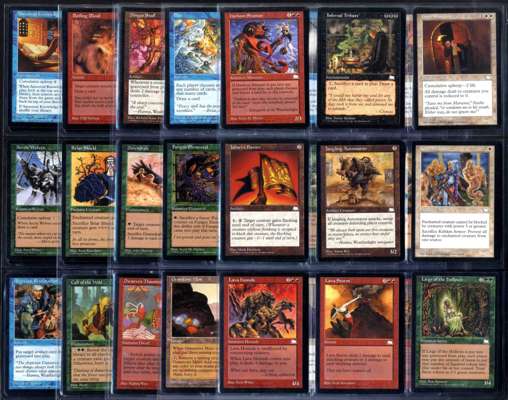 This lot features a complete set of Weatherlight, originally released in 1997, you'll be bidding on one copy of every card from the set. The set comes complete in alphabetical order and stored in ultra pro 9 pocket pages. They come from the personal collection of a long time magic player and while conditions vary the overall condition of this set is Excellent with the main cards as follows: