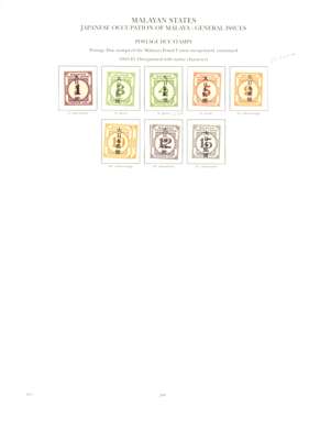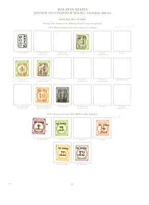 Postage Dues. 1942-5 MPU range with SG JD22 (Chop F, SG sales card), JD23a (C, short perf and thin spot, SG sales card), JD23b (L, SG sales card) and JD25b (E, unmounted, SG sales card). Also JD28-33 less JD30, and JD34-41 (JD36 two small foxed spots). SG £629