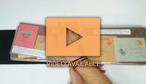 Black cover album with a most interesting range (106), mostly used. Includes two 1941 undeliverable from Britain, one with 5/- ‘Addressee Reported Missing’, Censors with a range of commercial usages, Japan used in Malaya, Military pcs, Sumatra, good range of the Pictorial cancels (these obviously philatelic), Australia 3d used within Kuching (philatelic), two post-war Freepost, ‘Missing in Action’ covers, Prisoner of War covers, and two unused Japanese postal stationery covers used post-war by the British. Many with little stories to tell, mixed condition but a very good collection