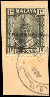 Thai Occupation of Trengganu: 1944 SG TT11 used on piece 1c Black on Perak Unpriced