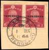 Thai Occupation of Trengganu: 1944 SG TT32 used pair on piece Japan 5s claret cat £2,000