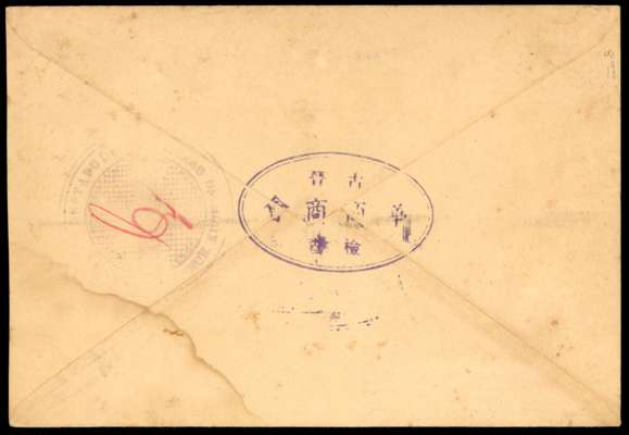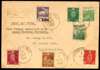 1942 (1 OCT) local addressed and registered cover, bearing Japan 1s to 8s tied by five strikes of Kuching cds on FIRST DAY OF ISSUE, with matching registration handstamp at upper left, with censor marks on reverse; slight staining, still a neat and rare cover.