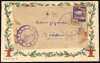1943 (17 Apr) cover (recycled Christmas envelope) from Sibu to Sarikei, bearing Japan 8s violet tied by Sibu type JD1 ‘Japanese’ cds, with circular ‘SUPPLY OFFICER’ cachet in violet at lower left; slight staining but most unusual.