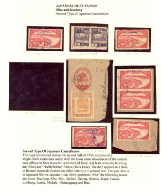 Sarawak Japanese Occupation group of type JD3 cancels from Sibu and Kuching