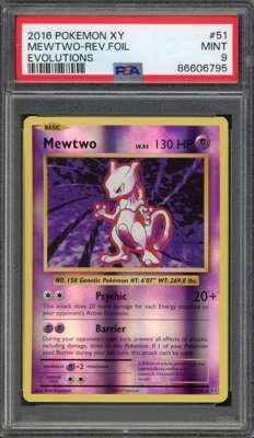 This lot features a reverse foil Mewtow card from the Evolutions set authenticated and graded by PSA.