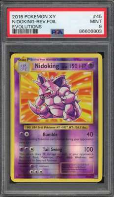 This lot features a reverse foil Nidoking card from the Evolutions set authenticated and graded by PSA.