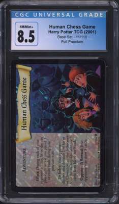 The lot features the premium foil Human Chess Game from the Harry Potter Base Set originally released in 2001. The card has been authenticated and graded by CGC and awarded a 8.5.