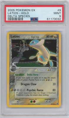This lot features a Holo Latios from the 2005 Delta Species expansion graded a PSA 9.